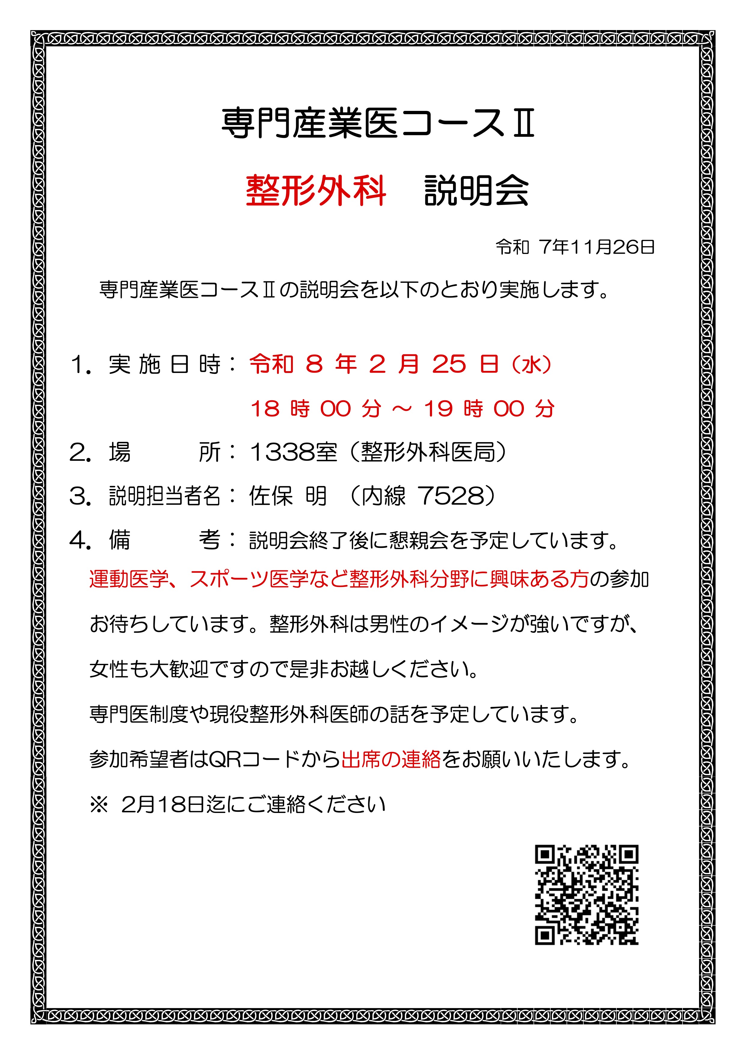 令和8年度 産業医科大学 整形外科 入局説明会のご案内